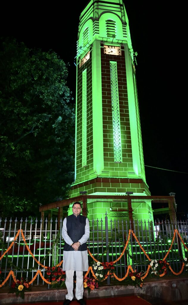 मुख्यमंत्री पुष्कर सिंह धामी ने किया देहरादून के ऐतिहासिक घण्टाघर के भव्य रूपांतरण एवं स्वचालित प्रकाश व्यवस्था का लोकार्पण