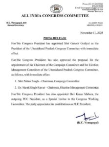 गोदियाल को फिर मिली कांग्रेस की कमान,प्रीतम चुनाव प्रचार समिति और हरक चुनाव प्रबंधन की ज़िम्मेदारी संभालेंगे