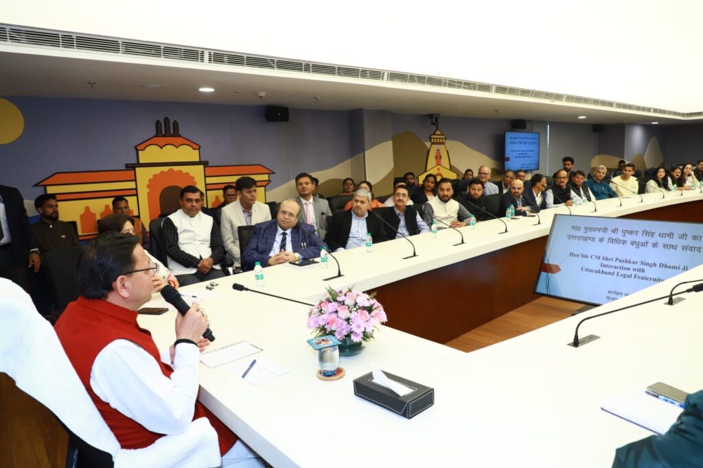 देहरादून/नई दिल्ली स्थित उत्तराखण्ड निवास में उत्तराखण्ड राज्य की रजत जयंती वर्ष के अवसर पर मुख्यमंत्री पुष्कर सिंह धामी ने प्रवासी उत्तराखण्डी अधिवक्ताओं के साथ संवाद किया। इस दौरान उन्होंने राज्य के विकास हेतु अधिवक्ताओं के साथ गहन विचार-मंथन किया। इस दौरान उन्होंने कानून व्यवस्था को सुदृढ़, पारदर्शी और प्रभावी बनाने के लिए सरकार द्वारा किए जा रहे प्रयासों और नीतिगत पहलों की जानकारी साझा की।