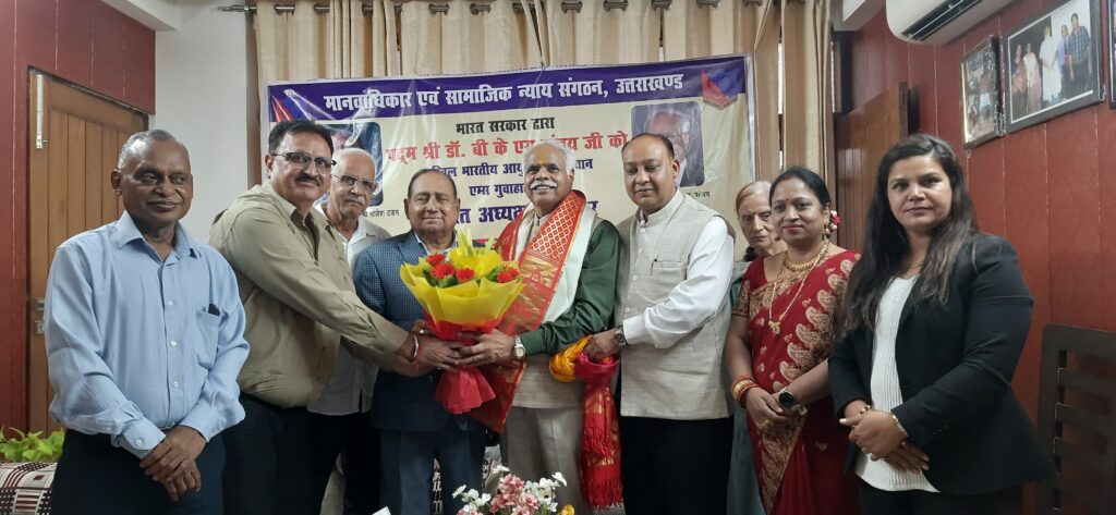 देहरादून।मानवाधिकार एवं सामाजिक न्याय संगठन ने भारत सरकार द्वारा पद्मश्री से सम्मानित प्रसिद्ध अस्थि रोग विशेषज्ञ डॉ.बी.के. एस.संजय को अखिल भारतीय आयुर्विज्ञान संस्थान (एम्स), गुवाहाटी का अध्यक्ष नामित किये जाने पर स्वागत एवं सम्मान किया गया। शनिवार को पुरुकुल रोड स्थित हेरिटेज ग्रीन में पूर्व जस्टिस राजेश टंडन के कार्यालय में आयोजित इस कार्यक्रम के अवसर पर जस्टिस राजेश टंडन ने कहा कि एम्स संस्थान भारत में उत्कृष्ट चिकित्सा शिक्षा,अनुसंधान एवं रोगी देखभाल के लिए सर्वोच्च संस्थान माने जाते हैं। भोजन, शिक्षा और स्वास्थ्य प्रत्येक व्यक्ति की मूलभूत आवश्यकताएँ हैं। जिसमें केंद्र सरकार ने भारत की तृतीयक स्वास्थ्य सेवा प्रणाली को सुदृढ़ करने और इन सेवाओं को बड़े शहरों से बाहर देश के कोने-कोने तक पहुँचाने का ऐतिहासिक निर्णय लिया। उन्होंने कहा वर्तमान में देशभर में 19 एम्स कार्यरत हैं, जिनमें एम्स गुवाहाटी भी सम्मिलित है।